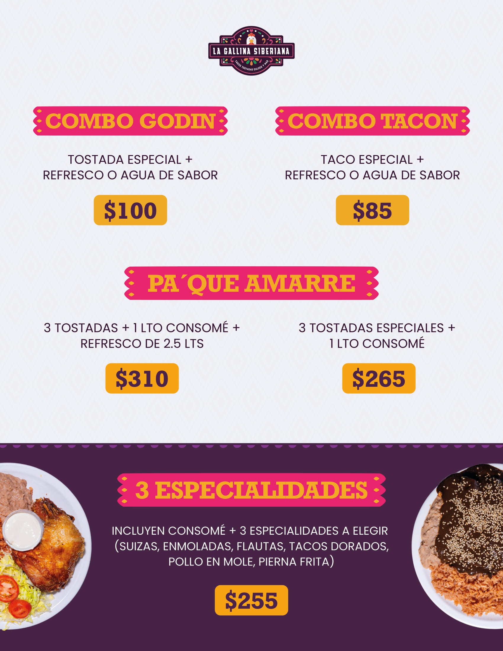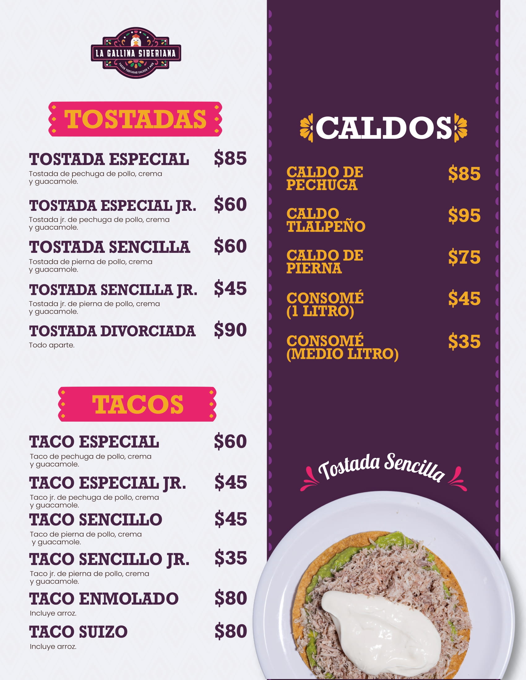 la gallina siberiana Las más deliciosas tostadas y tacos estilo Siberia, caldos y demás especialidades mexicanas.